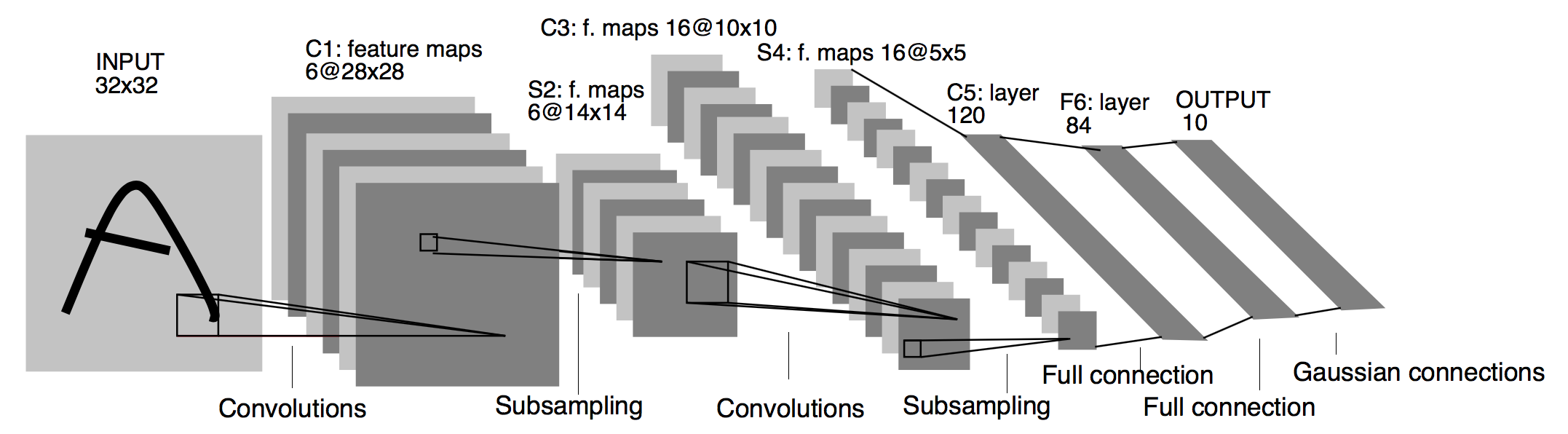 [LeNet-5 구조]출처: https://medium.com/@pechyonkin/key-deep-learning-architectures-lenet-5-6fc3c59e6f4