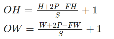 - 위 식의 값에서 (H+2P−FH) / S 또는 (W+2P−FW) / S가 정수로 나누어 떨어지는 값이어야 함