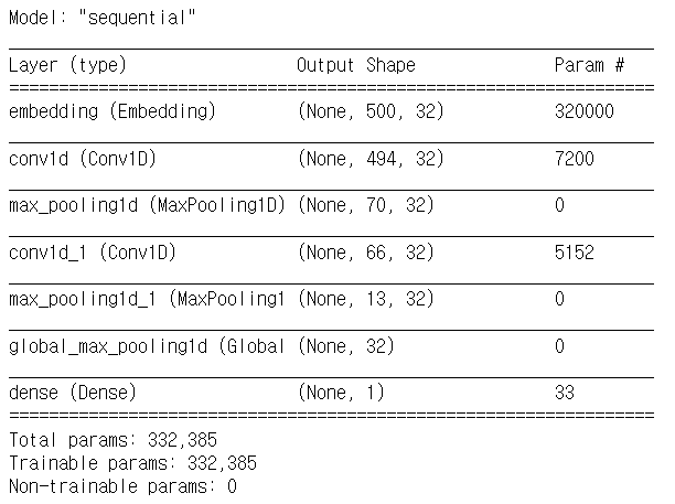 from tensorflow.keras.layers import Dense, Embedding, Conv1D, MaxPooling1D, GlobalMaxPooling1D